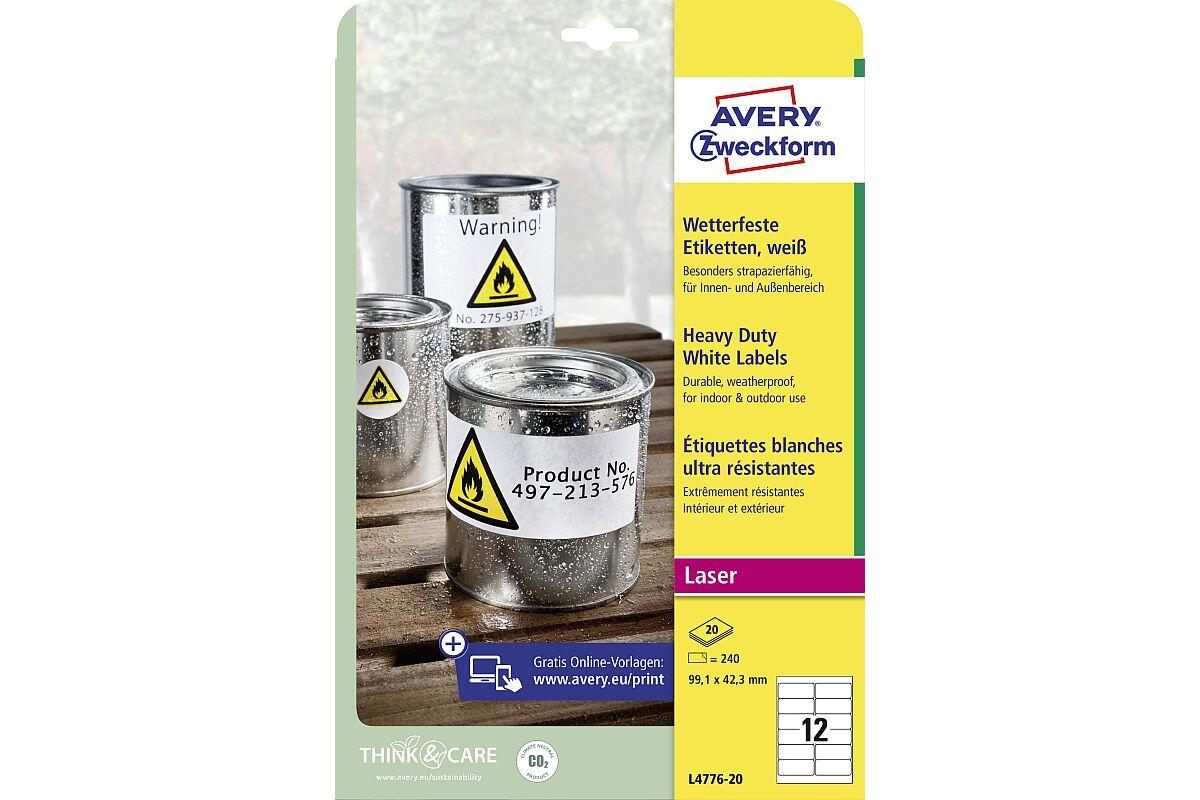 Etikety velmi odolné Avery Zweckform, 99,1 x 42,3 mm, arch A4, 20 listů, bílé