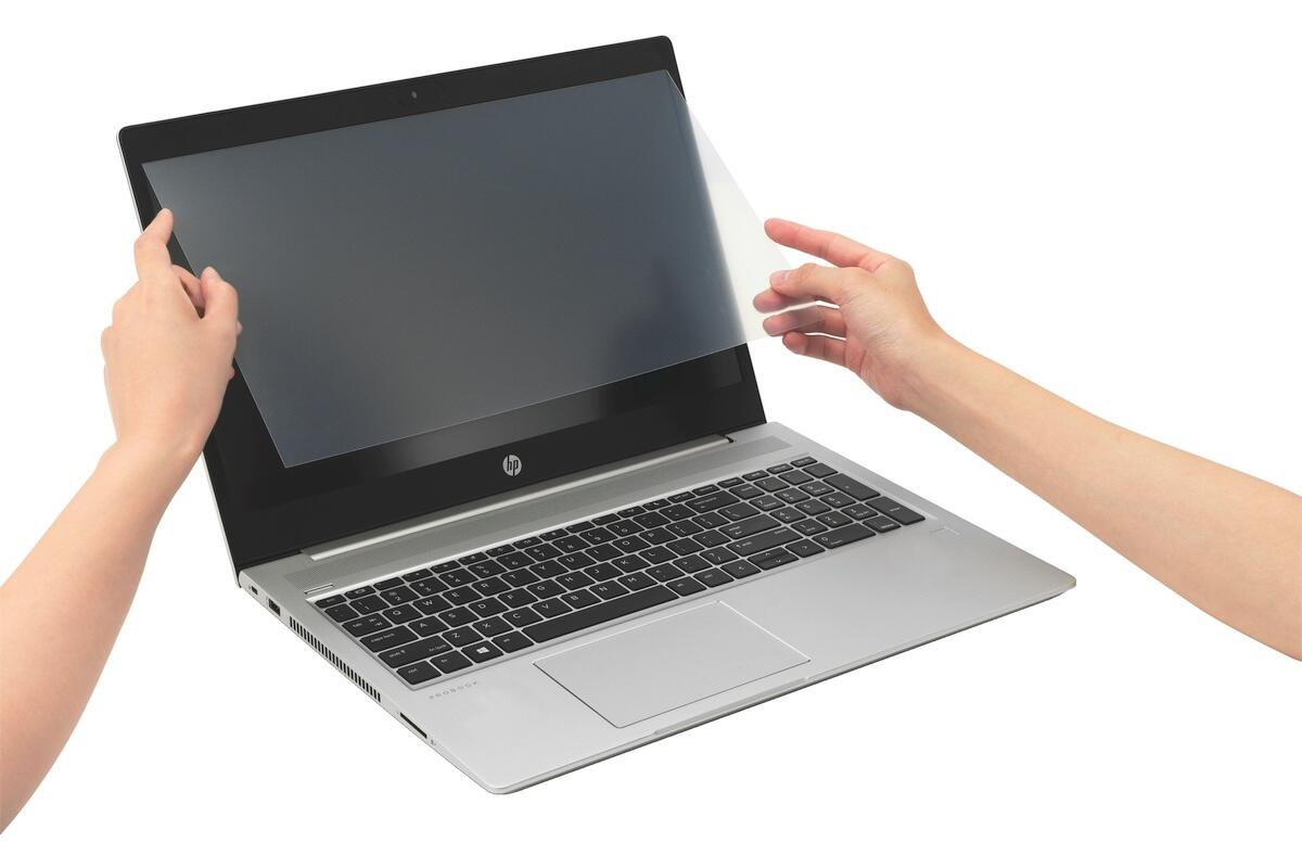 - instalace privátního filtru se provádí pomocí tenkých samolepicích průhledných úchytů a jejich instalace je snadná a intuitivní