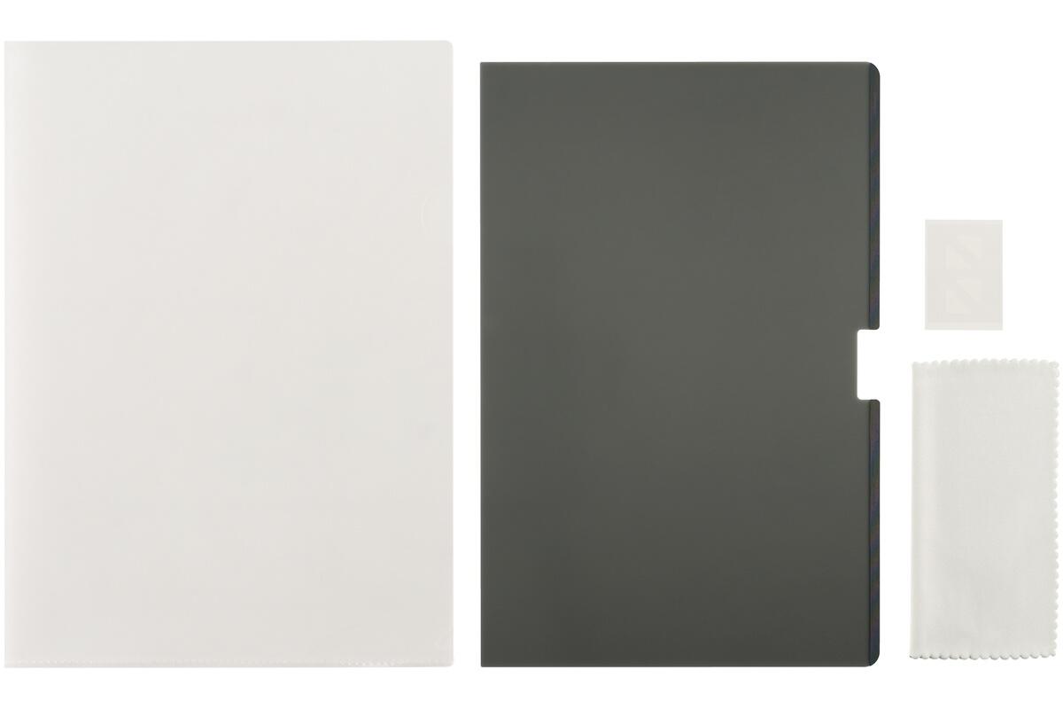 - jedna strana má matný povrch pro snížení odlesků a otisků prstů, druhá strana je lesklá a poskytuje čistější pohled na obrazovku