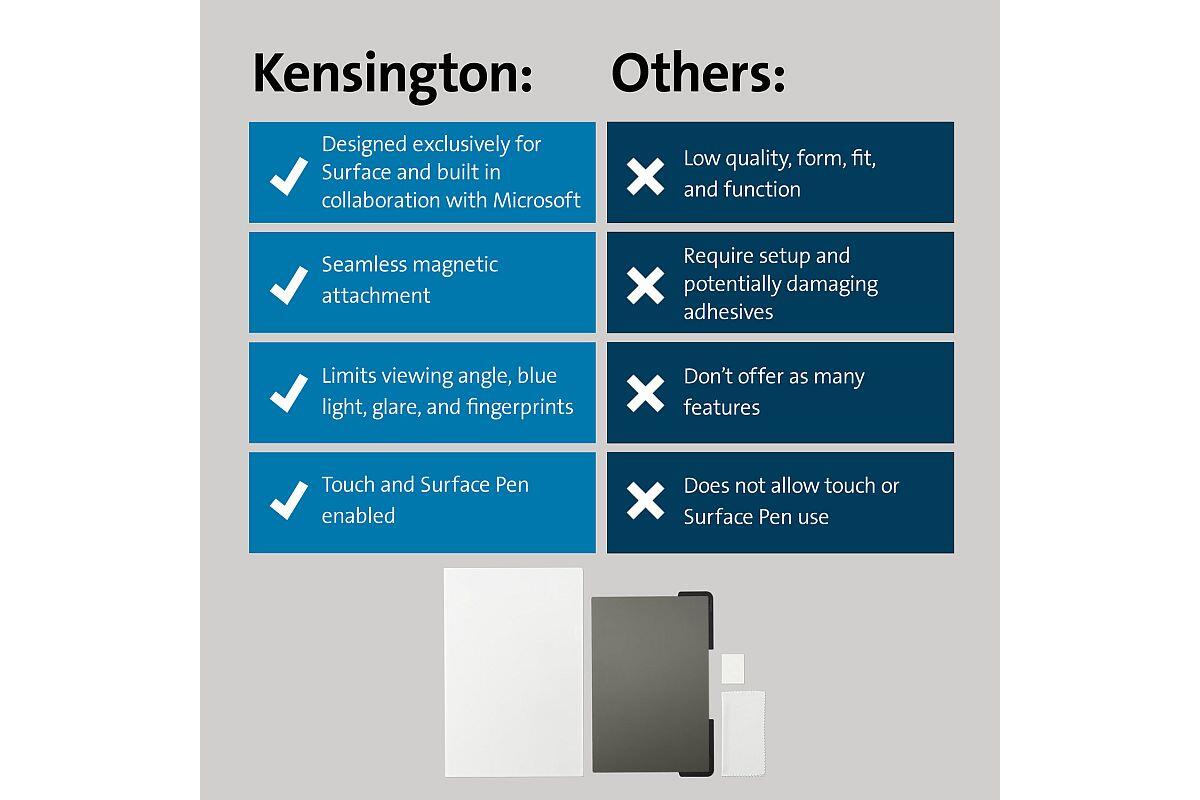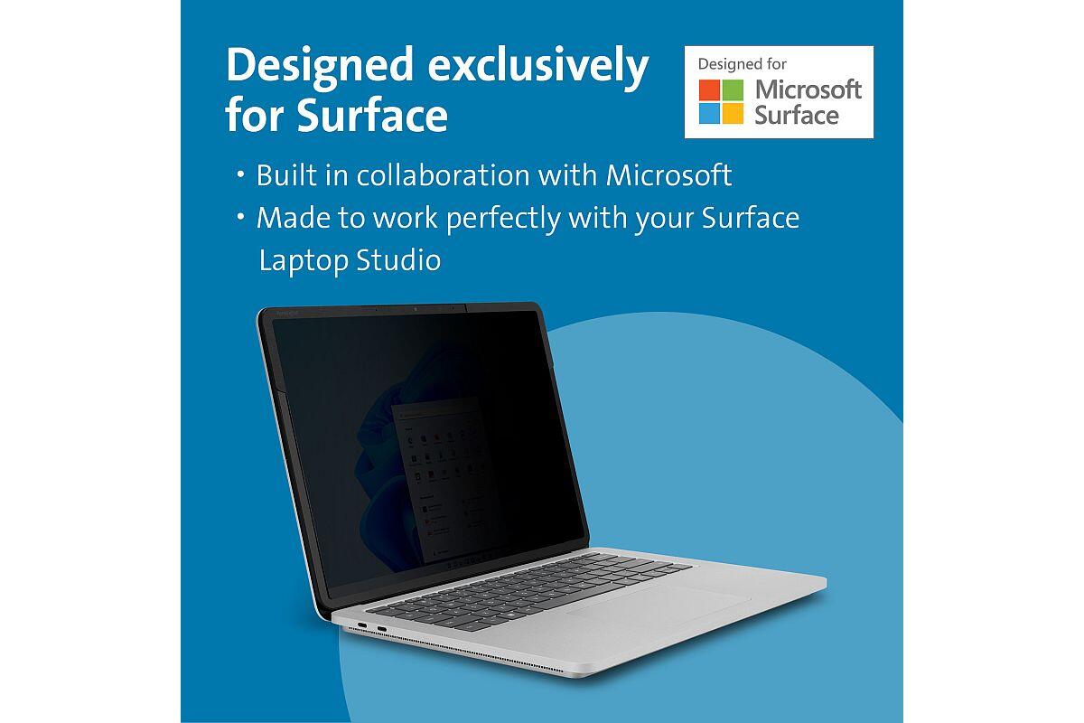- společnost Kensington, spolupracovala přímo se společností Microsoft, aby zajistila, že filtr pro ochranu soukromí bude dokonale fungovat s vaším Surface Laptop Studio