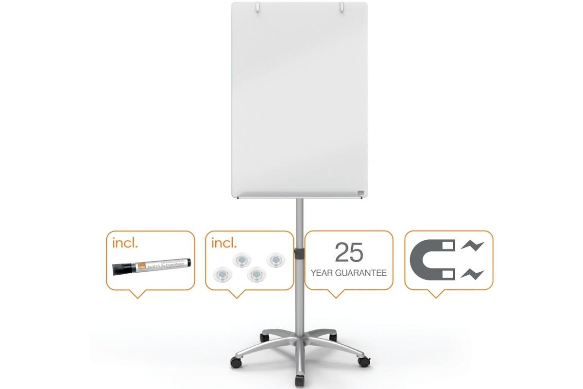 Flipchart magnetický Nobo Diamond, 70 x 100 cm, mobilní, skleněný, bílý