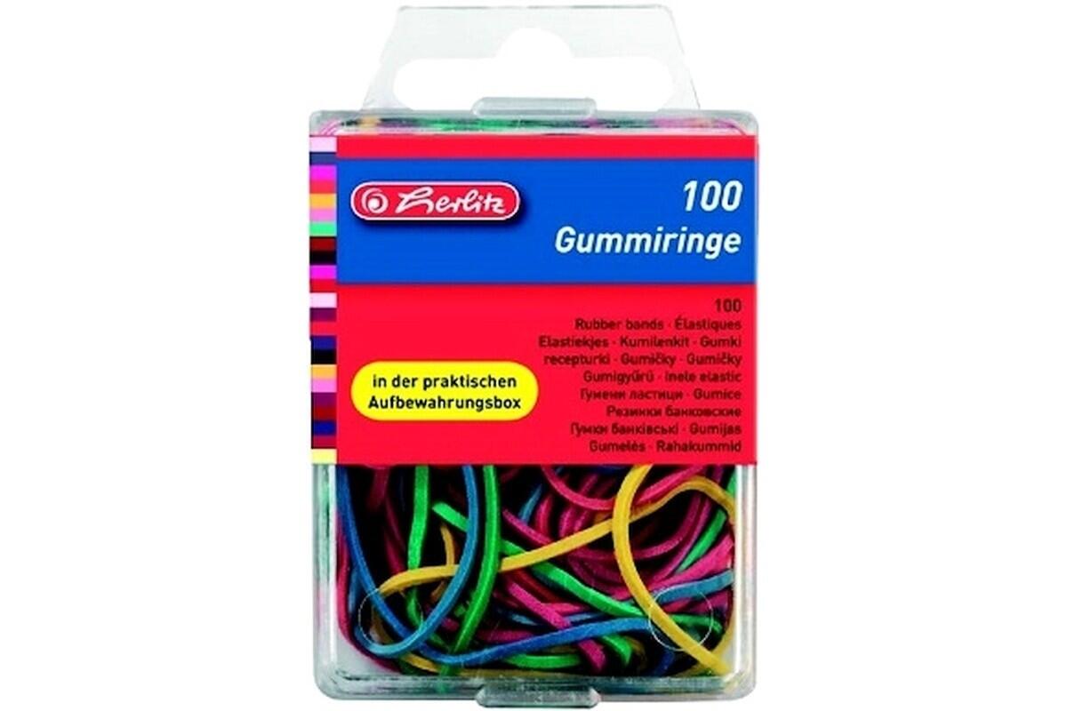 Gumičky stahovací, v plastové krabičce, 100 ks, mix barev
