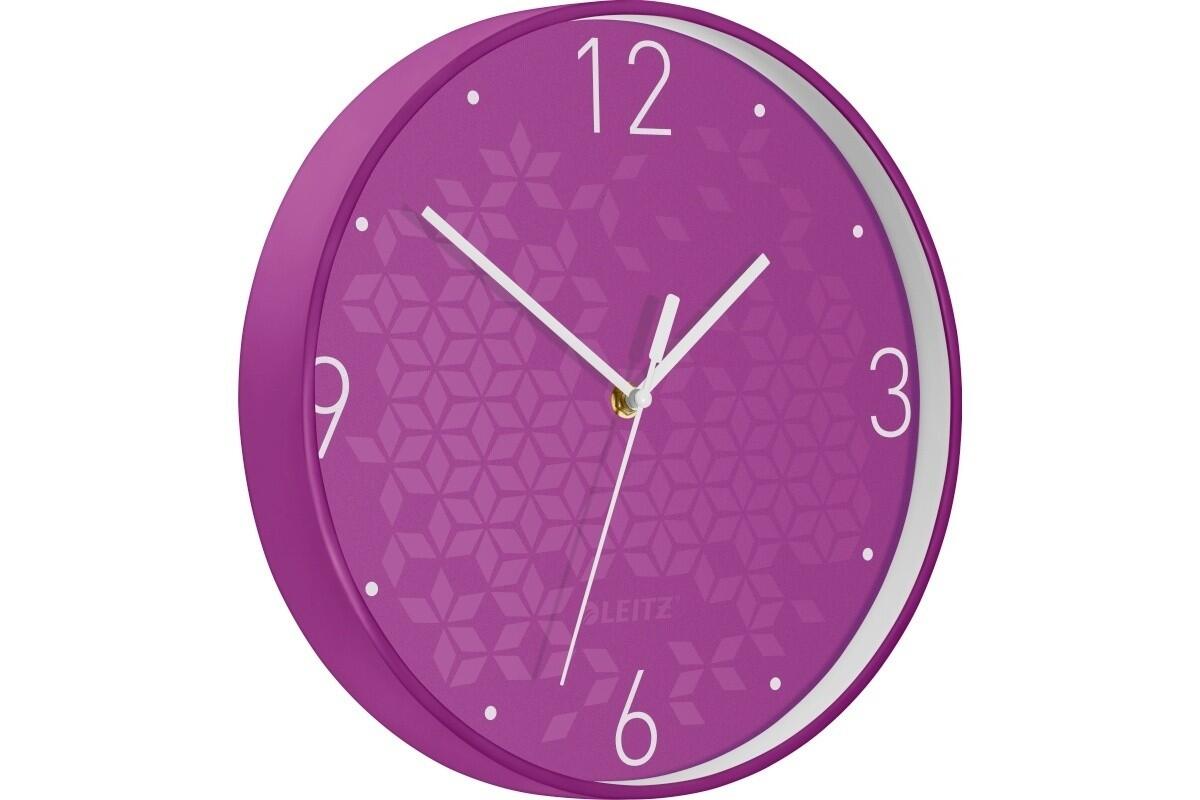 Hodiny nástěnné Leitz WOW, průměr 29 cm, tichý chod, plastové, fialové