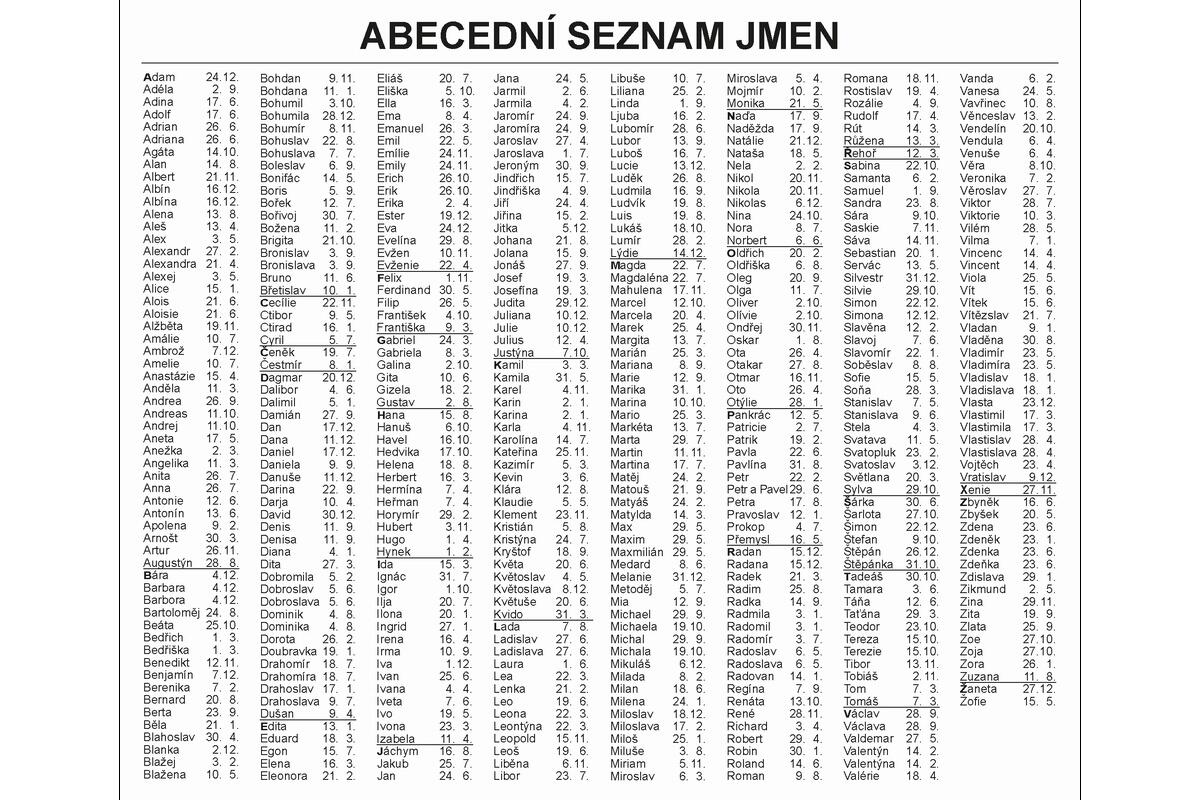 - abecední seznam jmen