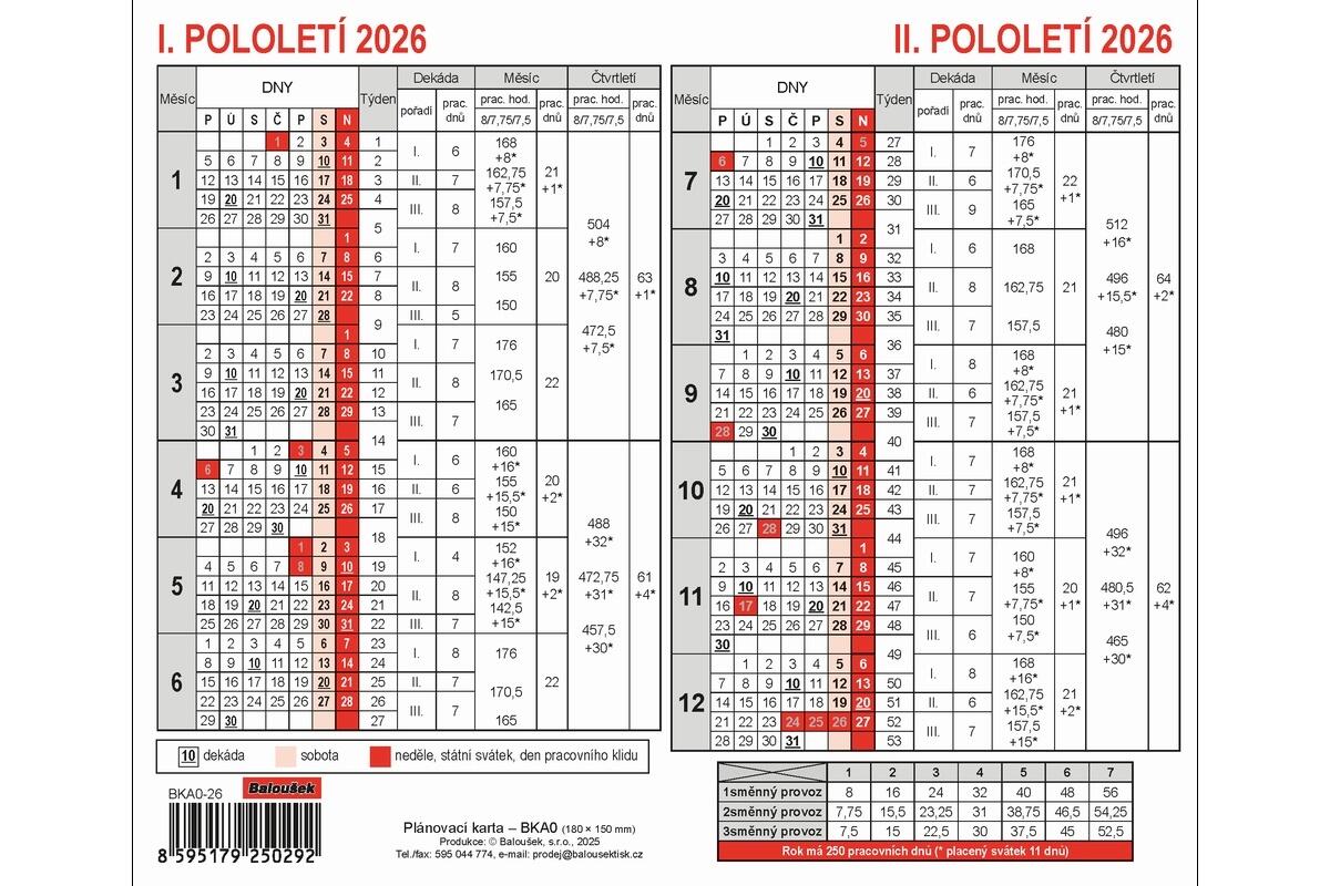 Kalendář Plánovací karta, 18 x 15 cm