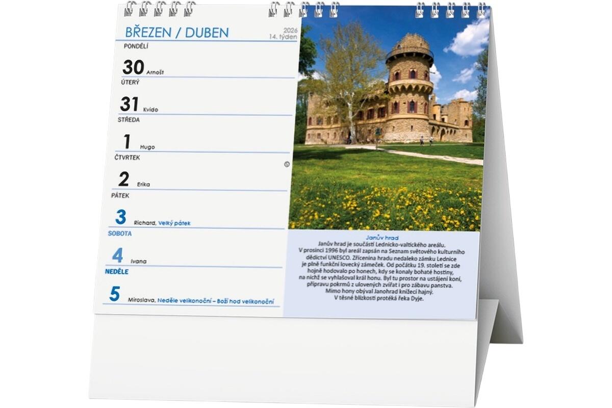 Kalendář stolní Ideál Hrady, zámky a památky Evropy, 16,5 x 13,5 cm