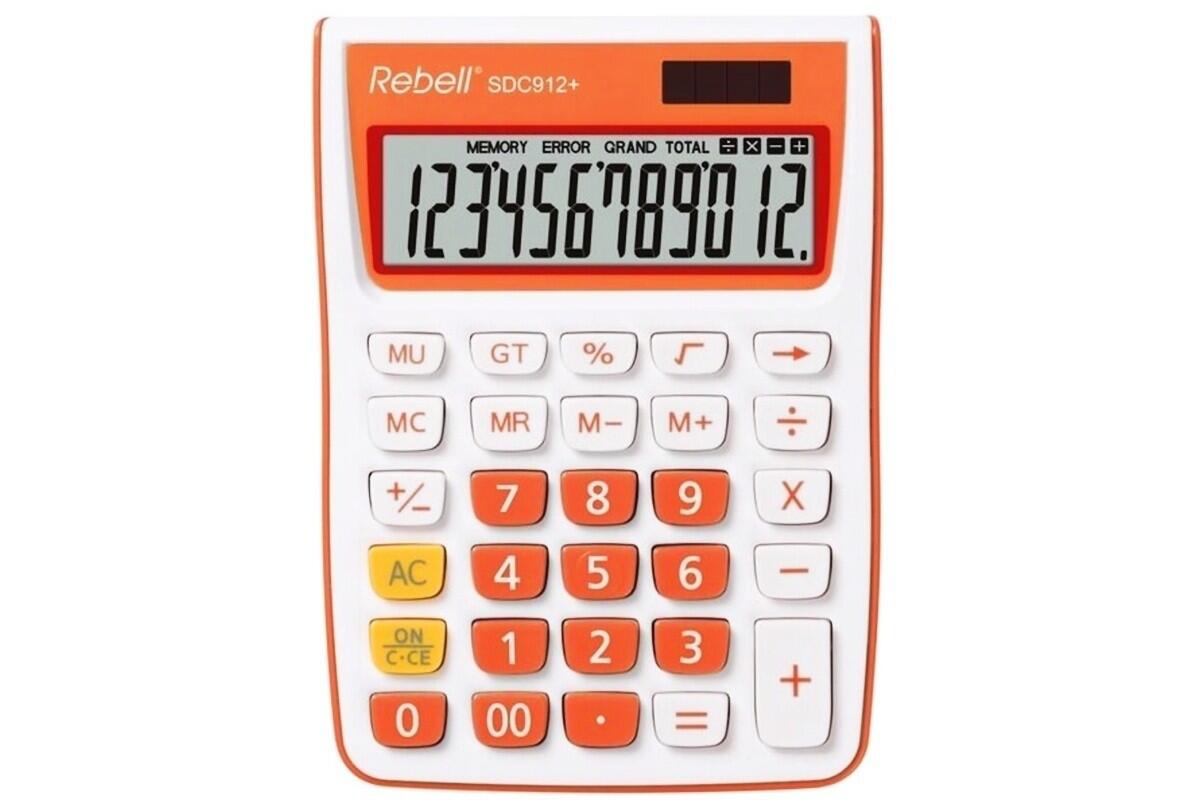 Kalkulačka Rebell SDC-912+, stolní, 12 míst, bílo-oranžová