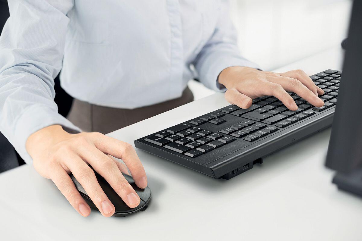 - pohodlné ovládání: klávesy s hmatovou odezvou a ergonomicky tvarovaná myš s třemi tlačítky poskytují maximální komfort při práci