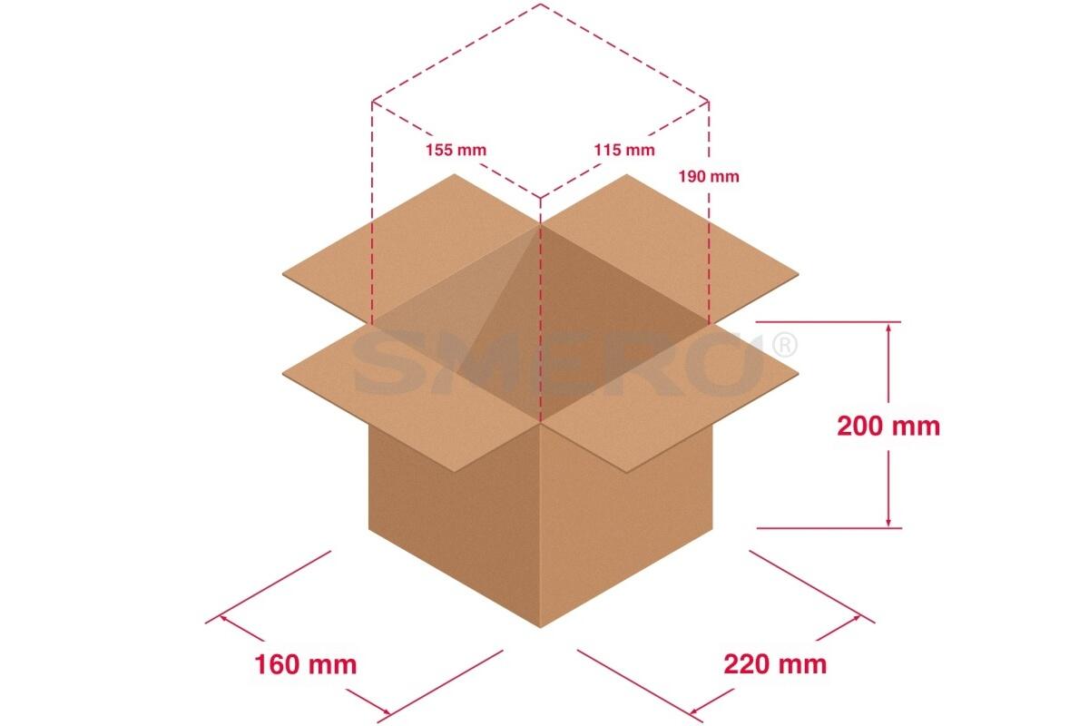 Krabice kartonová 3VVL, 220x160x200 mm, hnědá, 25 ks