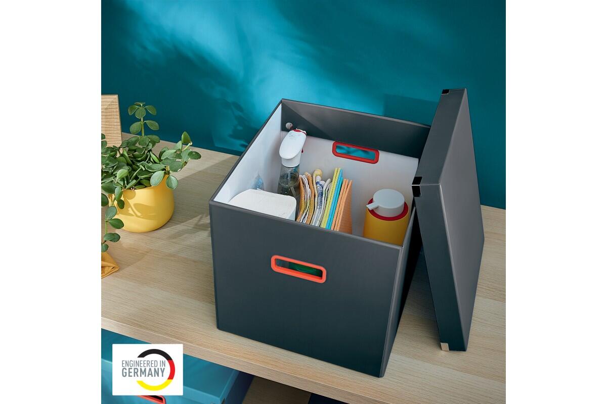 - prémiová skládací čtvercová krabice Click & Store Leitz Cosy s víkem je ideální pro udržení pořádku v domácnosti i kanceláři
