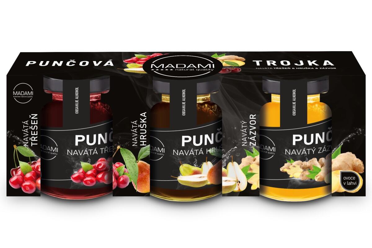 - kousky ovoce naložené v kvalitní směsi z alkoholu, to je Punč, který můžete v tomto praktickém balení ochutnat hned ve třech nejoblíbenějších příchutích