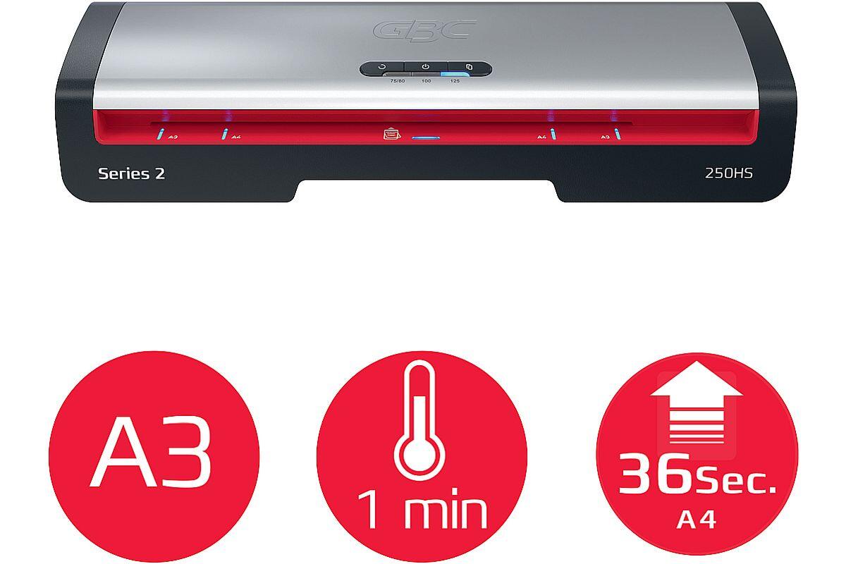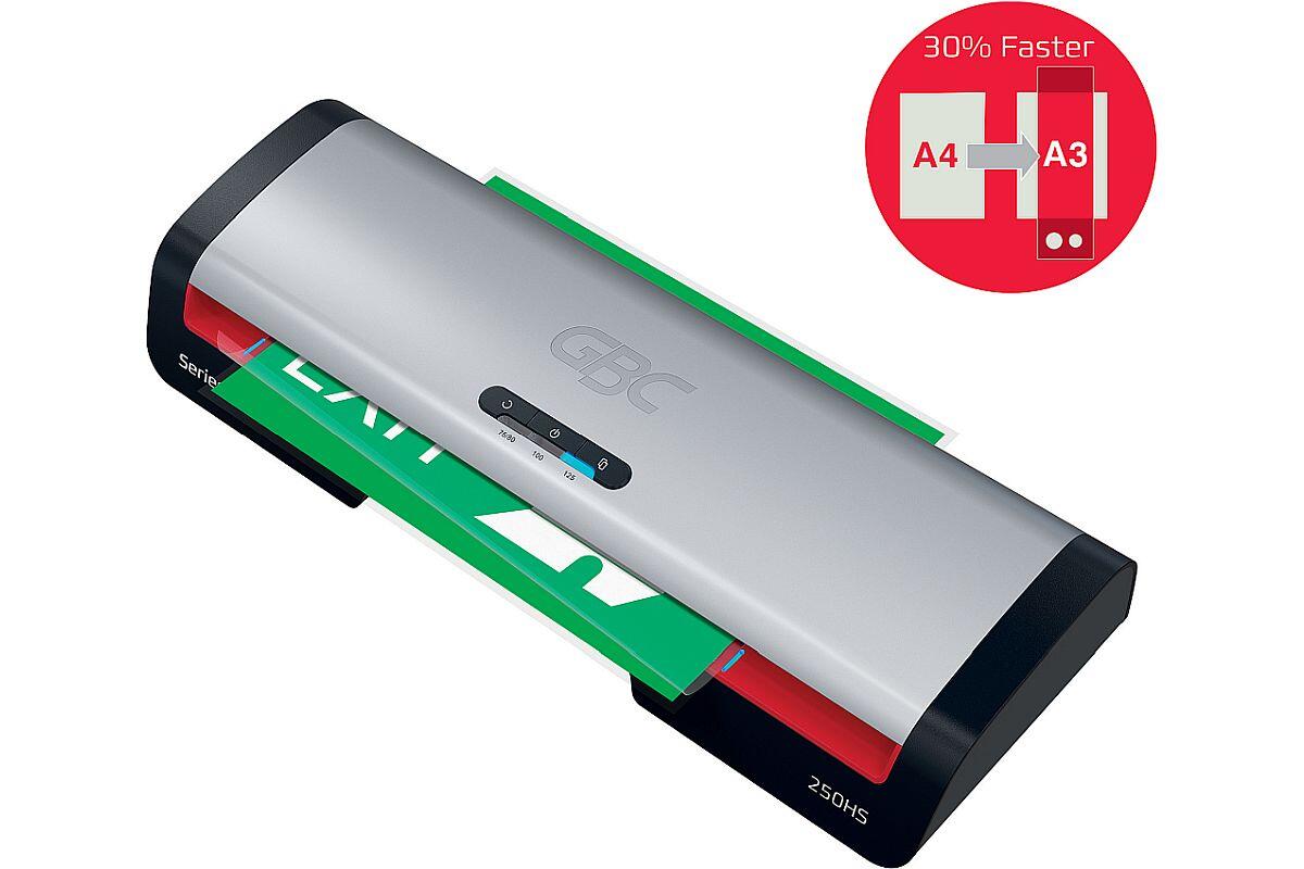 - chraňte své důležité dokumenty pomocí laminátoru GBC 250HS pro formát A3, který představuje spolehlivé a efektivní řešení pro každodenní kancelářské laminování