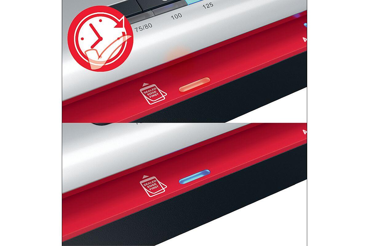 - stavová LED dioda SMART: během zahřívání svítí červeně a zmodrá se zvukovým signálem, když je laminátor připraven k použití