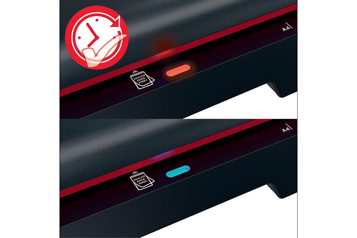 - stavová LED dioda SMART: během zahřívání svítí červeně a zmodrá se zvukovým signálem, když je laminátor připraven k použití