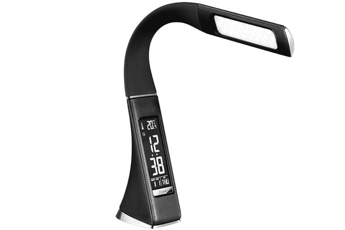 Lampa stolní Solight WO46-B, LED, stmívatelná, 6 W, s displejem, design kůže, černá