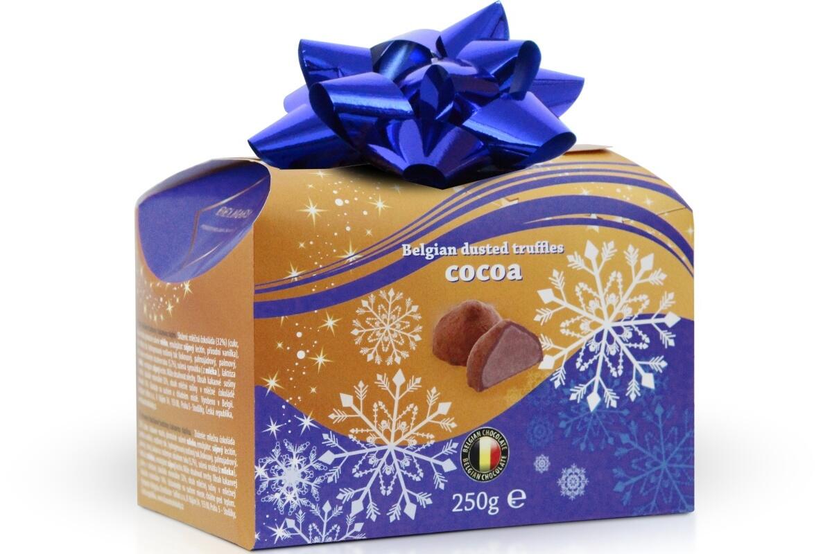 Lanýže belgické, Zlatomodré vánoce, náplň a příchuť kakaa, s modrou mašlí, 250 g