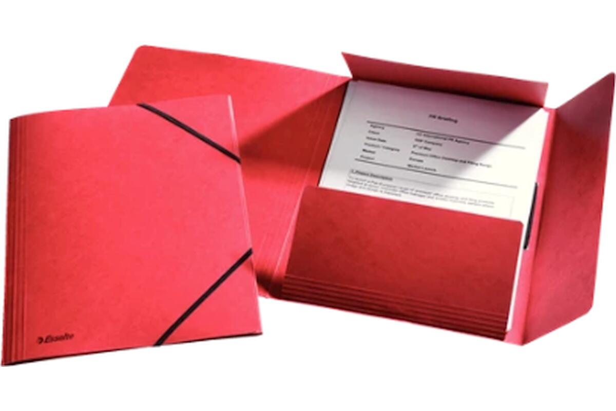 Mapa odkládací A4 Esselte Rainbow 253, tříklopá, s gumičkou, prešpán, červená