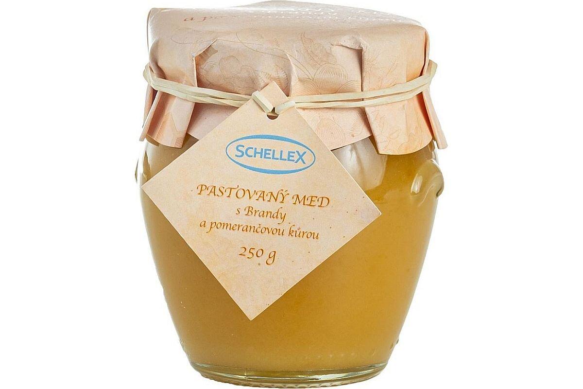 - med květový pastovaný (88 %), pomerančová kůra (10 %), brandy (2 %)