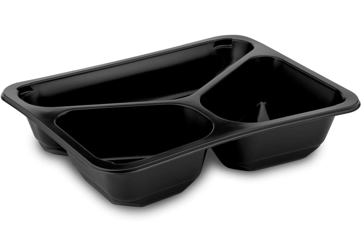 Menu miska trojdílná, plastová, 1,12 l, PP, 22,7 x 17,8 x 5 cm, 50 ks, černá