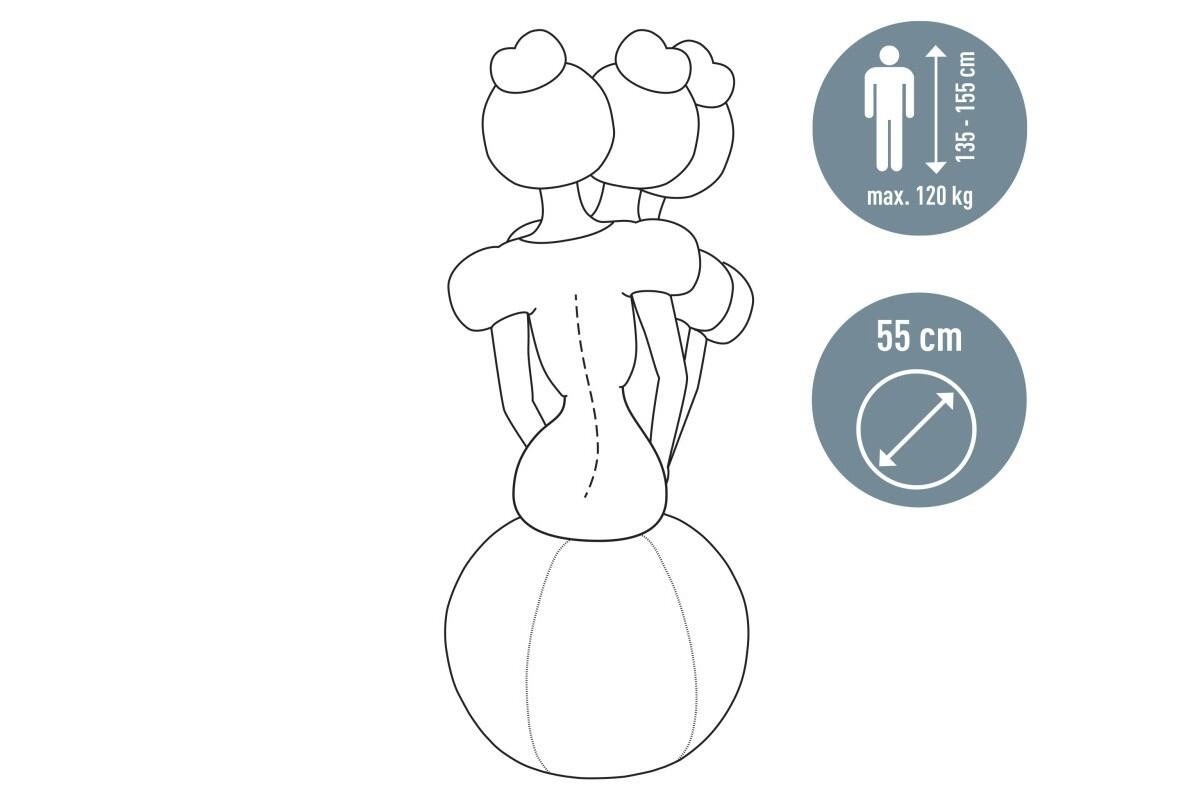 - velkorysý průměr 55 cm s robustním vnitřním balonem bez ftalátů je vhodný pro výšku 135 až 155 cm a maximální zatížení 120 kg