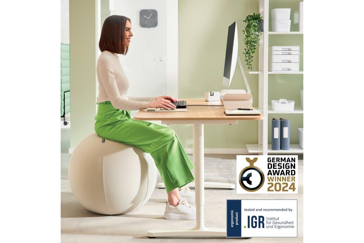 - míč na sezení Leitz Ergo s těžítkem podporuje pohyb zad a středu těla, zlepšuje držení těla a zmírňuje bolesti zad