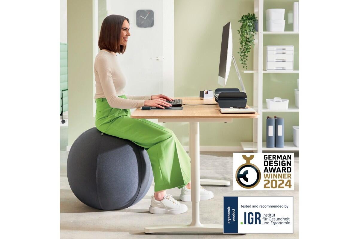 - míč na sezení Leitz Ergo s těžítkem podporuje pohyb zad a středu těla, zlepšuje držení těla a zmírňuje bolesti zad