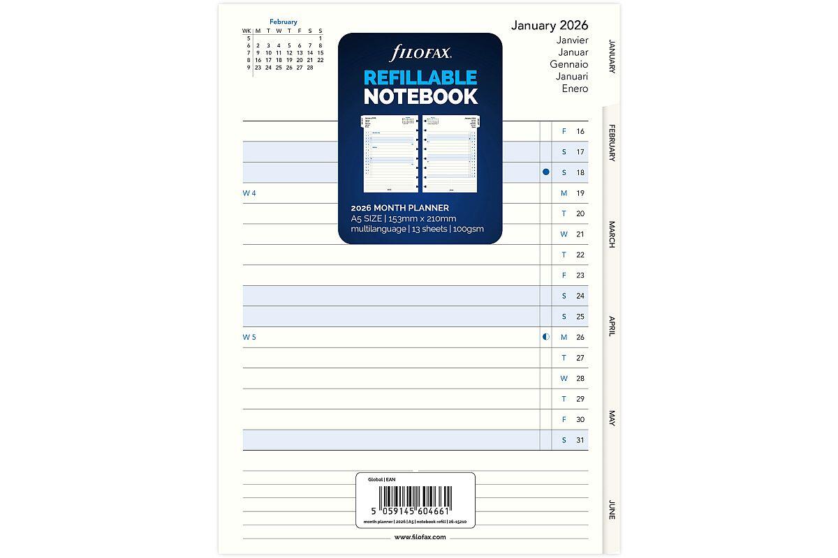 | 1332120 | Náplň do bloku A5 s boční spirálou Filofax Notebook, měsíční přehled | kalendárium |
