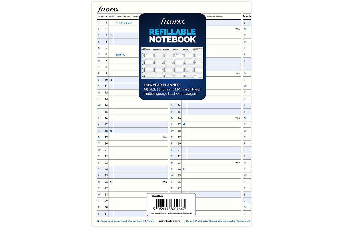 | 1332020 | Náplň do bloku A5 s boční spirálou Filofax Notebook, roční přehled | linka |