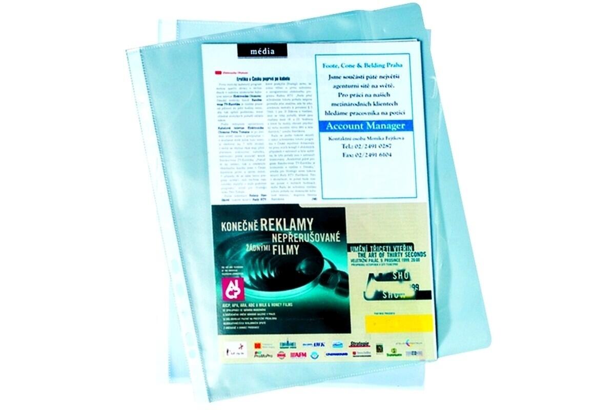 Obal euro A4 L/U Herlitz, 50 mikronů, otevřený shora a z boku, 100 ks, čirý