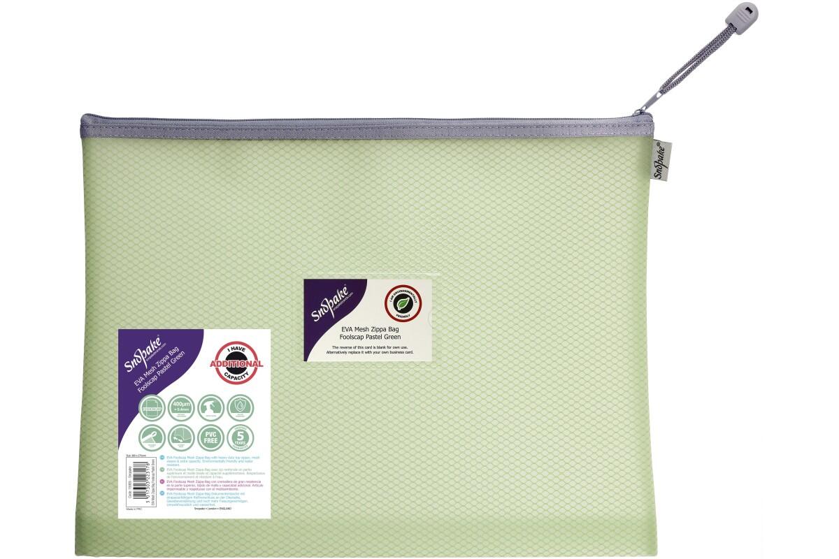 Obal se zipem Snopake Eva, 36 x 27,5 cm, síťovaný, plastový, pastelově zelený