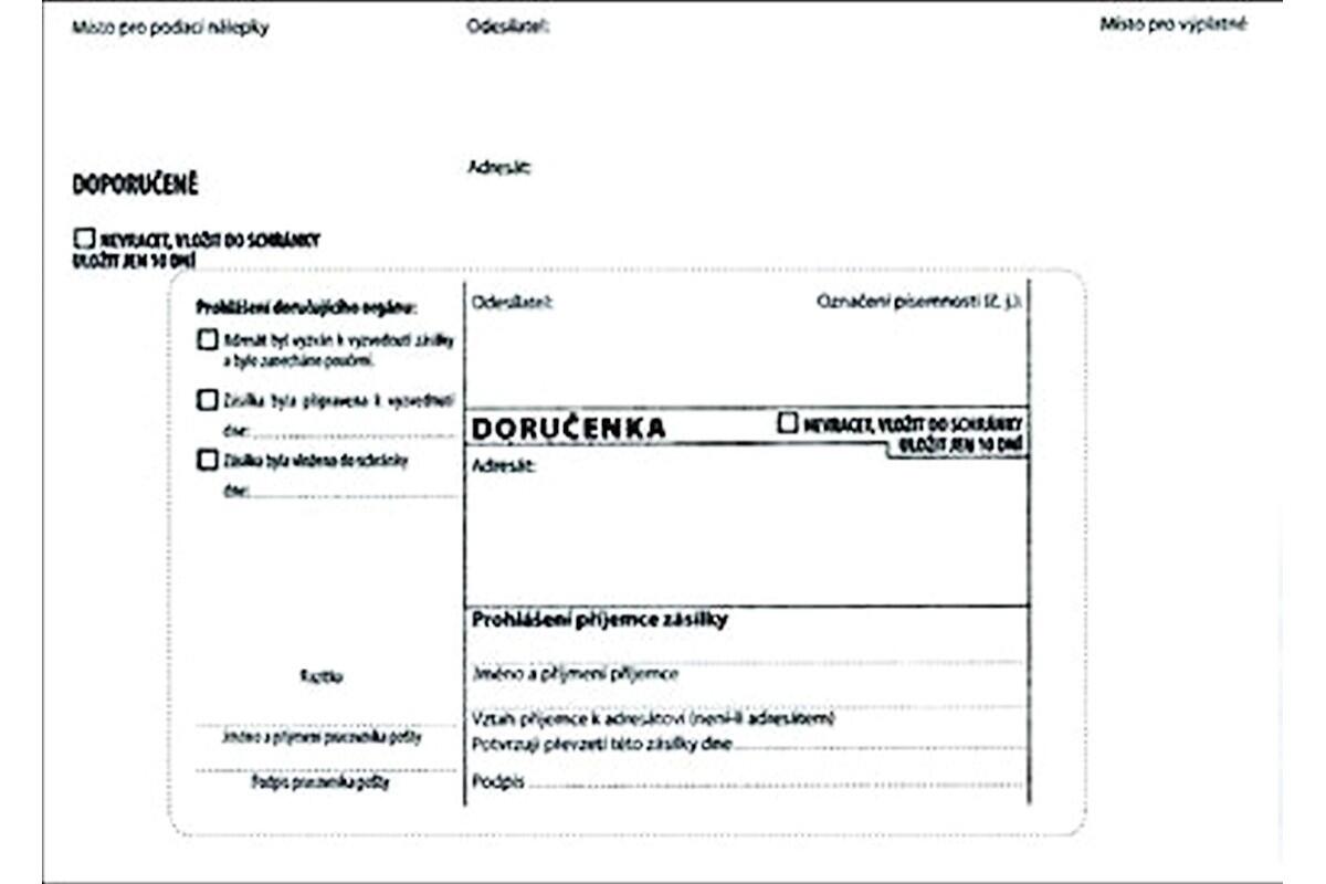 - obálka s vytrhávací doručenkou a odtrhávacím poučením na zadní straně