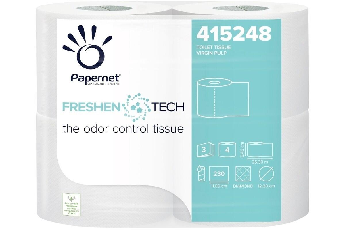 Papír toaletní Papernet FreshenTech, 3vrstvý, celulóza, ø 12,2 cm, 25 m, 230 útržků, 4 ks, bílý (415248)