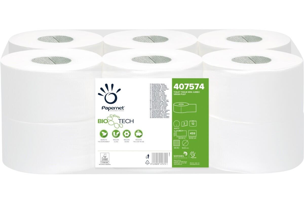 Papír toaletní Papernet Superior BioTech, 2vrstvý, celulóza, ø 19,5 cm, 140 m, 459 útržků, 12 ks, bílý (407574)