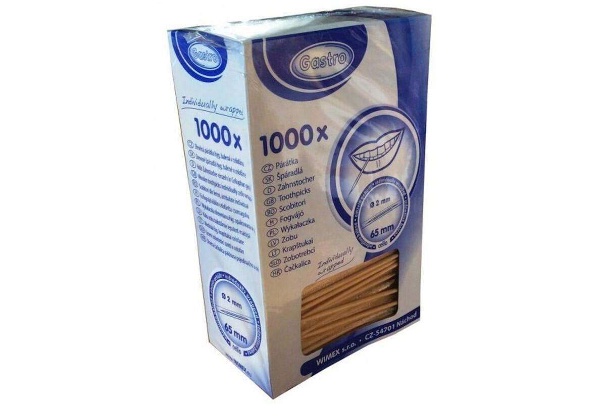 Párátka dřevěná, FSC 100%, délka 6,5 cm, průměr 2 mm, jednotlivě balená v celofánu, 1 000 ks