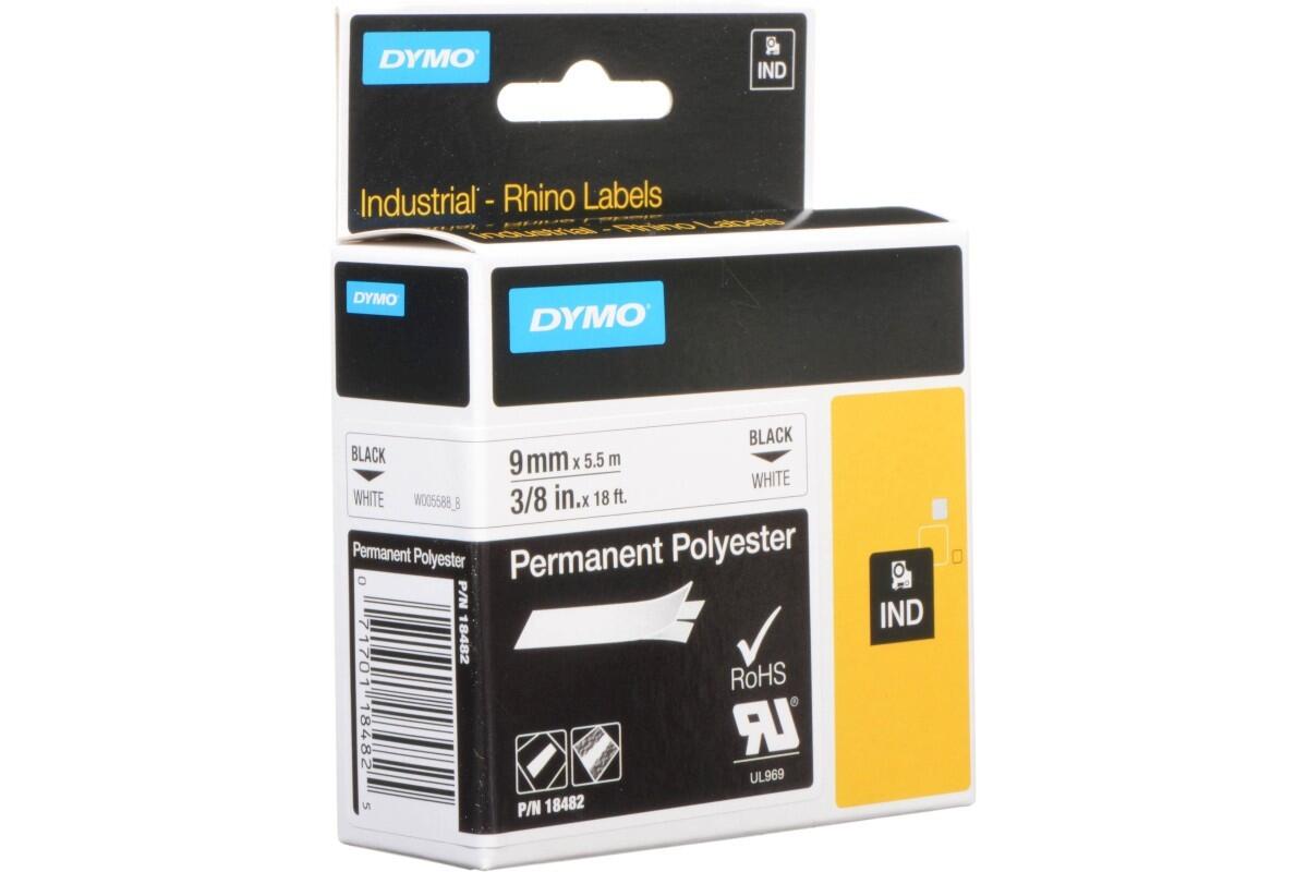 Páska Dymo Rhino, 9 mmx5,5 m, polyesterová, černá na bílé