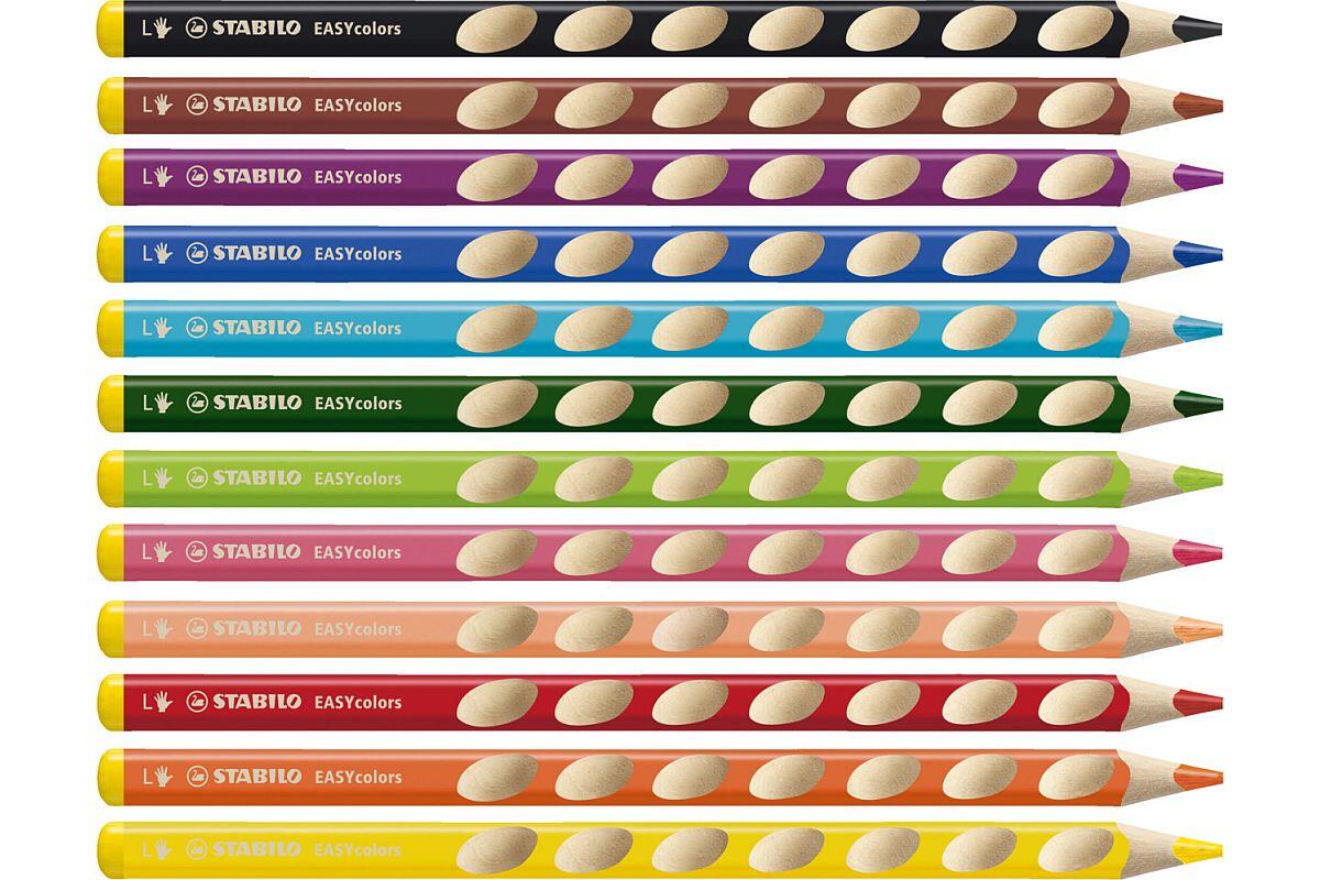 Pastelky Stabilo Easy colors, trojhranné, pro leváky, 12 ks