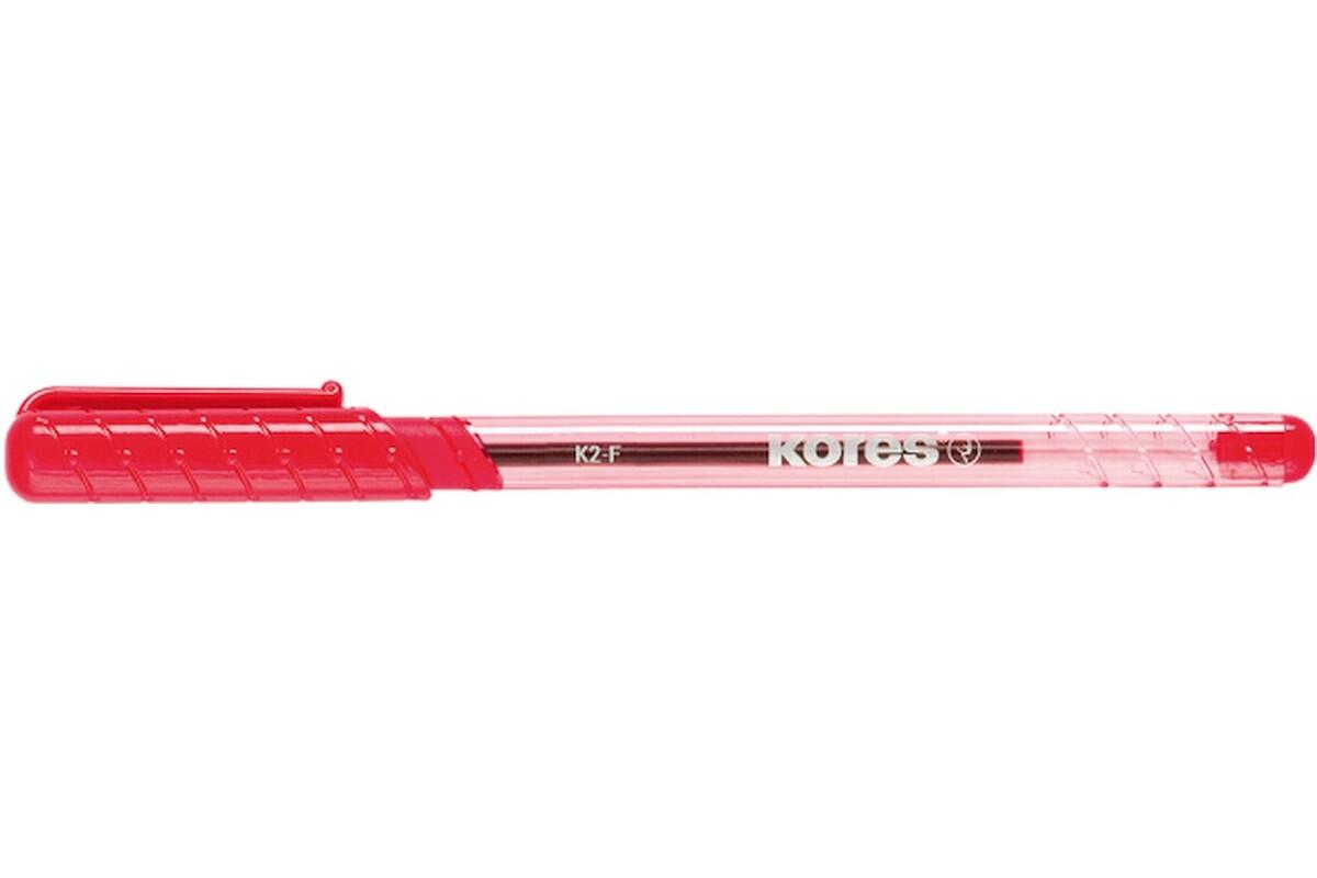 Pero kuličkové Kores K2 Pen, 0,7 mm, transparentní, trojhranné, červené
