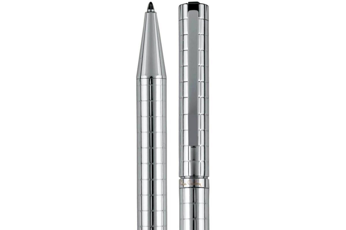 - tělo pera je zdobeno šachovnicovým rytím, obsahuje kvalitní náplň v modré barvě s hrotem 1 mm