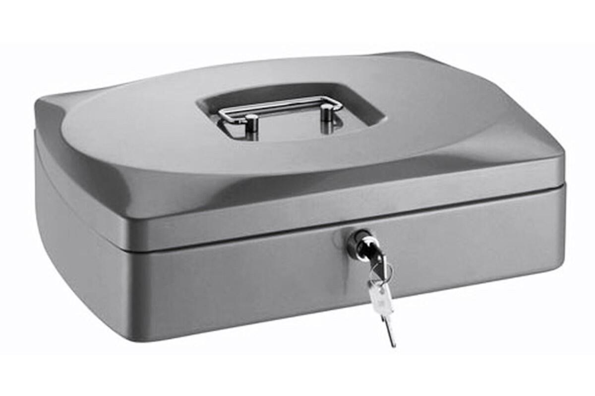 Pokladna kovová RON 1843, 330x235x90 mm, stříbrná