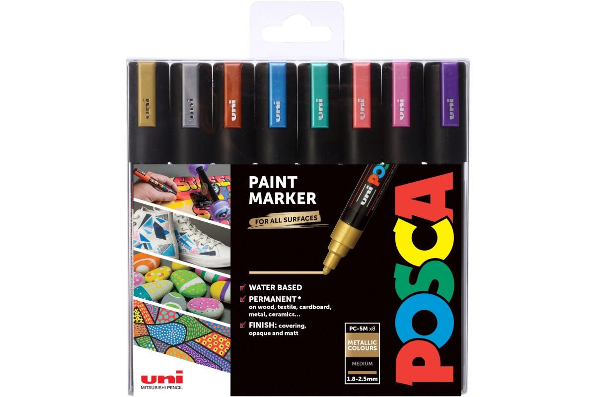 Popisovač akrylový Uni Posca PC-5M, 1,8-2,5 mm, sada 8 metalických barev