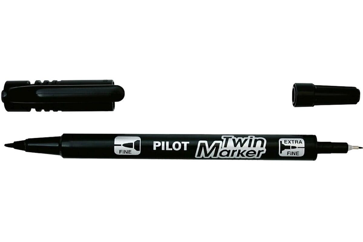 Popisovač permanentní Pilot Twin Marker, 2,0 mm / 0,8 mm, dvouhrotý, černý