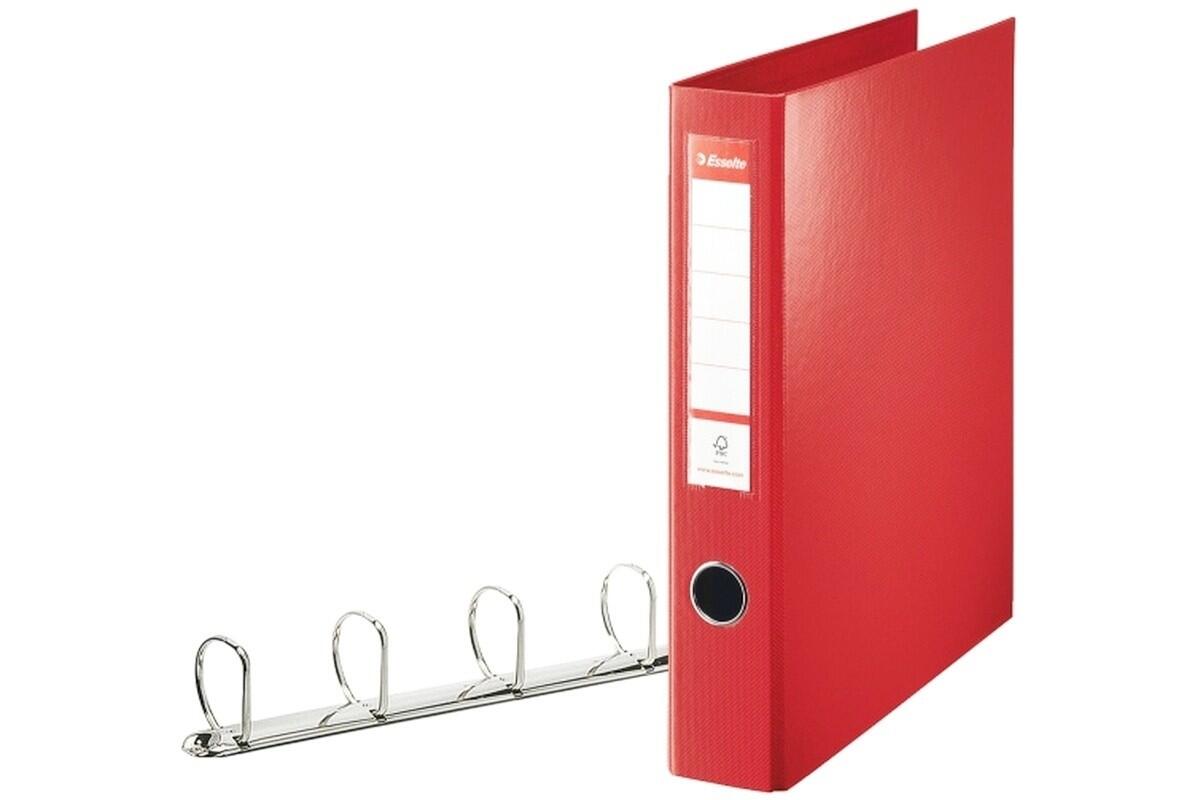 Pořadač čtyřkroužkový A4 Esselte Vivida, maxi, celoplastový, hřbet 6 cm, červený