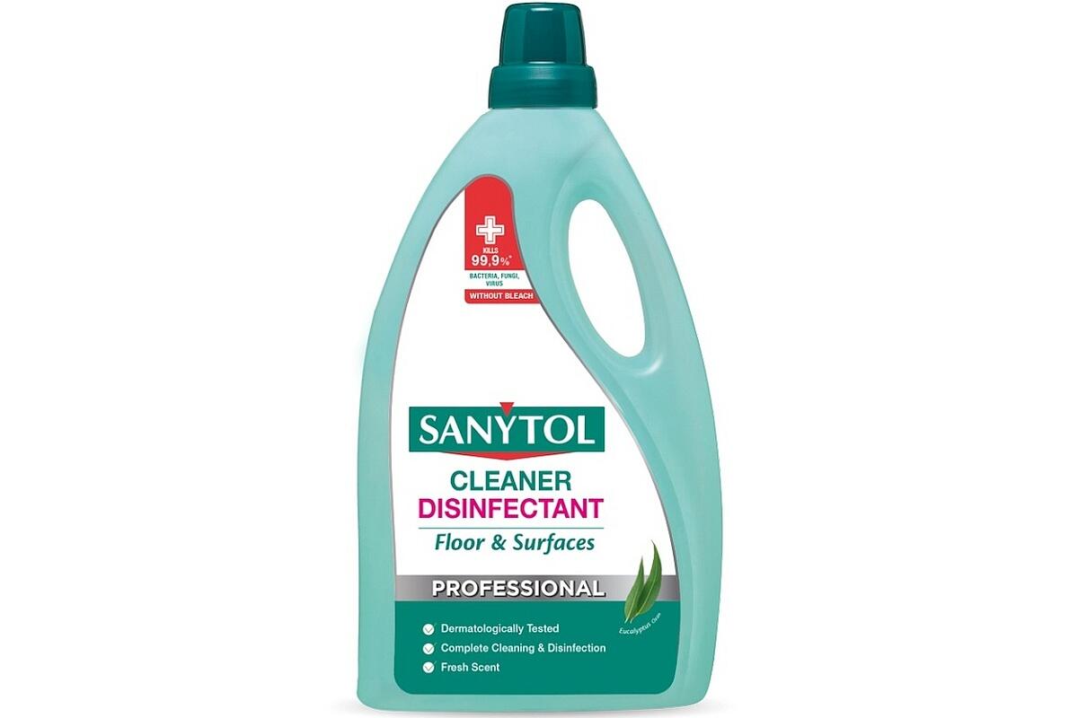 - Sanytol na podlahy a povrchy čistí bez chlóru, dezinfikuje a odmašťuje