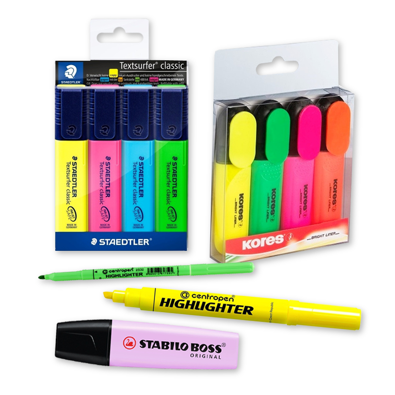 Zvýrazňovače usnadňují orientaci v textu a pomáhají soustředit se na to nejdůležitější. Jsou ideální pro školáky, studenty i kancelářskou práci. Nabízíme pestrou paletu barev, různé šířky hrotů i ergonomické tvary pro pohodlné držení. Inkoust kvalitních zvýrazňovačů je sytý, rychleschnoucí a nepropíjí většinu běžných papírů. S našimi zvýrazňovači je učení i práce mnohem přehlednější, rychlejší a efektivnější.