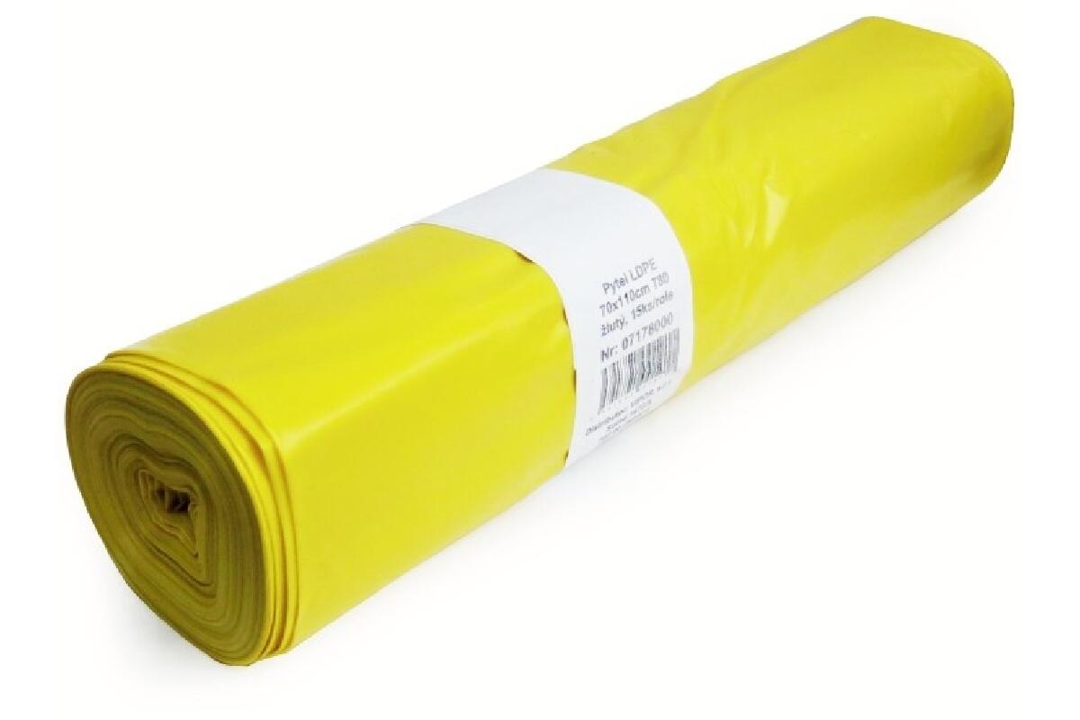 Pytel na odpad, 70 x 110 cm, 120 l, 80 mikronů, LDPE, 15 ks, žlutý