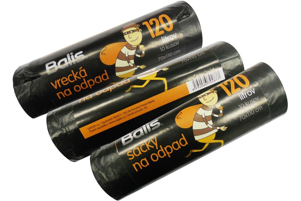 Pytel na odpad Balis, 70 x 110 cm, 120 l, 20 mikronů, HDPE, 10 ks, černý