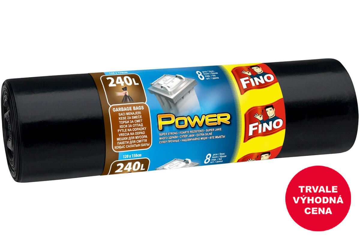Pytel na odpad Fino Power, 120 x 150 cm, 240 l, 45 mikronů, LDPE, 8 ks, černý