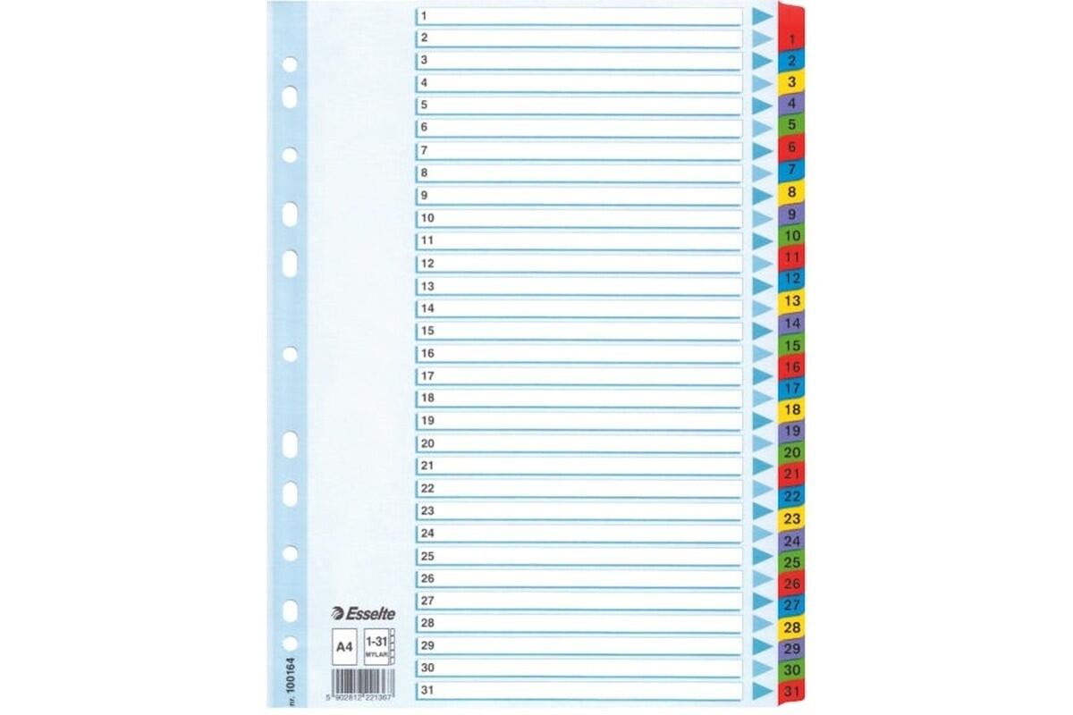 | 3300164 | Rejstřík kartonový A4 Esselte Mylar, číselný 1-31, mix barev |