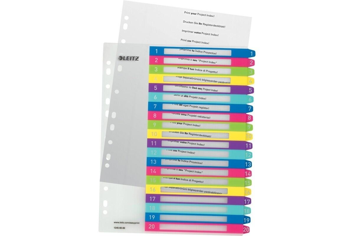 Rejstřík plastový A4+ Leitz WOW Maxi, číselný 1-20, mix barev