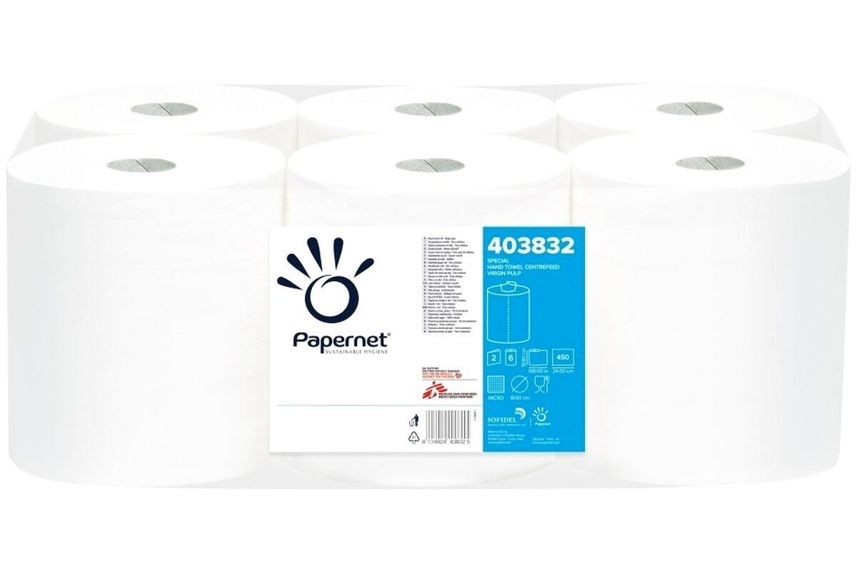 Ručník papírový na roli Papernet Centrefeed, 2vrstvý, celulóza, středové odvíjení, ø 19,5 cm, 105,75 m, 6 ks, bílý (403832)